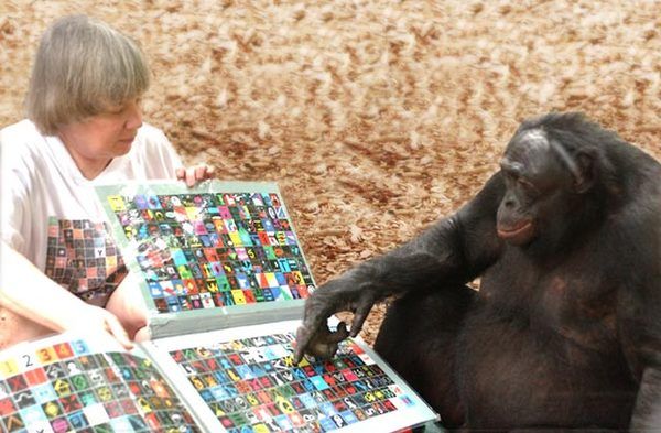 Czy małpę można nauczyć mówić? Okazuje się, że tak, jednak znacznie większe efekty przynosi nauka języka migowego niż próby wyczuwania człekoształtych artykulacji. Jedną z najważniejszych małp, które brały udział w licznych eksperymentach, badaniach, zajęciach jest Kanzi. Nie uczono go poprzez mechaniczne wbijanie do głowy kolejnych znaków, poprzez wmuszanie i powtarzanie gestów, aż do zapamiętania. Dzieci uczą się języka bez wysiłku, poprzez asymilacje – wystarczy im przebywanie wśród języka, aby również nauczyć się nim posługiwać. Podobnie traktowano Kanziego, małpę gatunku bonobo. W wieku 6 lat Kanzi potrafił posługiwać się około 200 słowami. Dzisiaj nie tylko rozumie polecenia w języku migowym, ale również te zwerbalizowane.